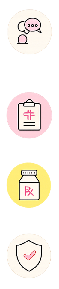 A brief consultation with a licensed provider to review your symptoms, history, and treatment needs.